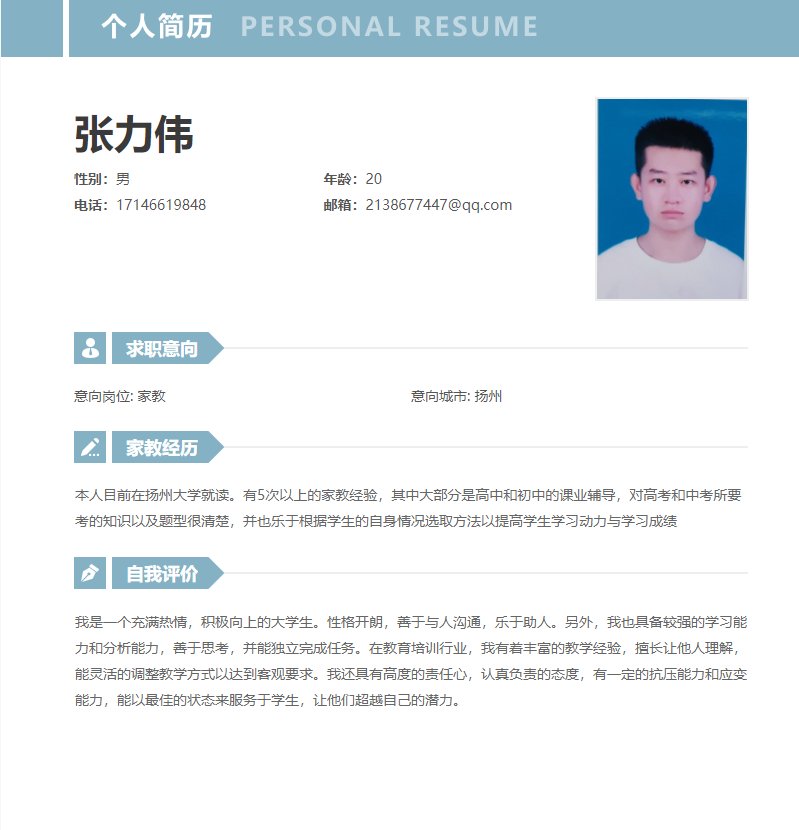 学习经历 个人简介 女、19岁,扬州本地人,目前就读于苏..