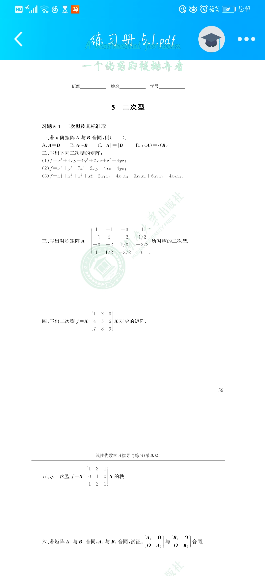 湖南大学 本科大一学生 化学
